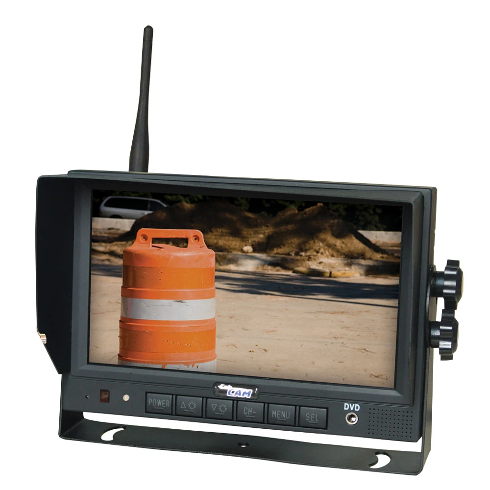 7″ TFT LCD Wide-Angle Color Monitor for the CabCAM Cameras. High resolution monitor with antenna. Four camera capability 2.4GHz wireless receiver with four channels. One video and one audio RCA output. Supports 12V automotive battery.