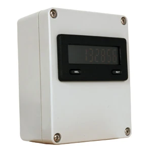 When counting the number of items on a conveyor, install the photo electric sensor kit. There is a maximum of 10′ (3 m) between the sensor and pickup which should be large enough for most conveyor systems or livestock chutes. Use Product ID E11401 Photo Electric Sensor Kit sold separately.