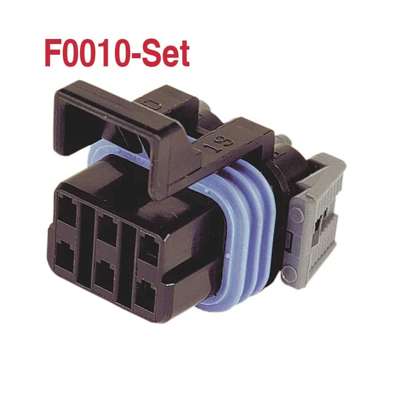 For your convenience, this set gives you the opportunity to purchase everything you would need in a package that includes F-F0010 (12052848) female connector body, six F-F4400 socket terminals, and six F-F6000 seals. Mates with F-F0009-Set.