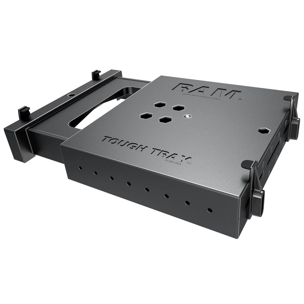 Universal Laptop Tough-Tray Holder w/Flat Retaining Arms. With the wide adoption of smartphones and tablets, these devices have become an essential tool for today’s farmers. RAM partnered with John Deere to offer device-mounting solutions which enable farmers to place these essential devices where they need them most. Some of the considerations most important to John Deere engineering included selecting a mounting solution that could be located and mounted where they are accessible but did not interfere with machine controls or field of view. John Deere specifically selected RAM products because they met the tough requirements and customer needs identified, while offering convenient adjustability as well as attachment/removal.