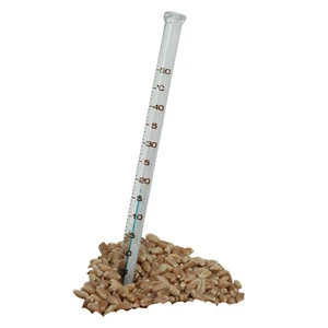 5.5″ glass thermometer -10 C to 110 C range. Black graduations with red liquid and white background for easy reading.